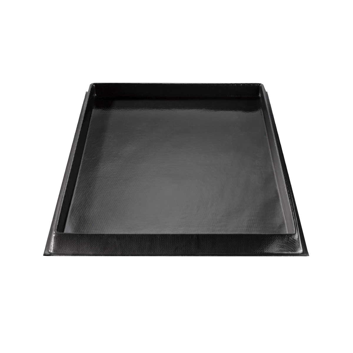 Verser la pâte sur la grande plaque génoise Flexipan préalablement placée sur une plaque pâtissière perforée, lisser à la spatule pour bien répartir.