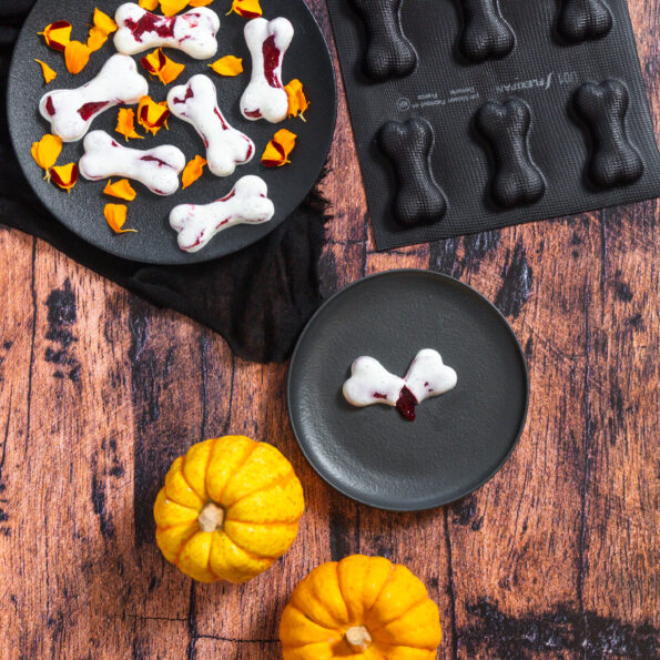 1. Quand la première couche de panna cotta a légèrement pris (mais pas complètement), insérer l’insert de fruit congelé au centre.